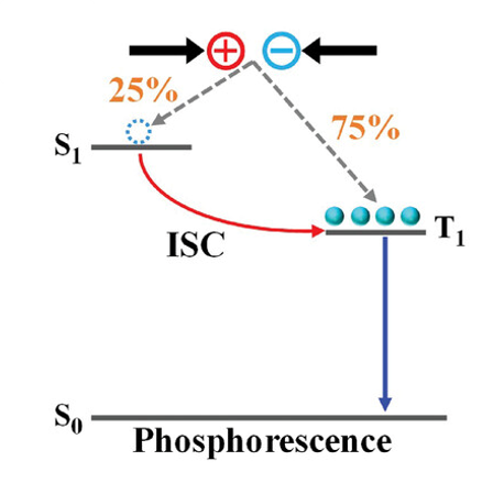 그림 8. 인광 발광 메커니즘에서의 계간 전이(ISC) 모식도[5]