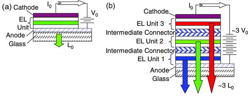 [6] Fung, M. K., Li, Y. Q., & Liao, L. S. (2016). Tandem organic light‐emitting diodes. Advanced materials, 28(47), 10381-10408.