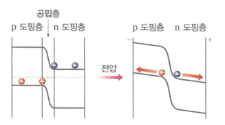 그림 5. 전압에 의한 p-n 접합으로부터의 전하의 분리 [8]