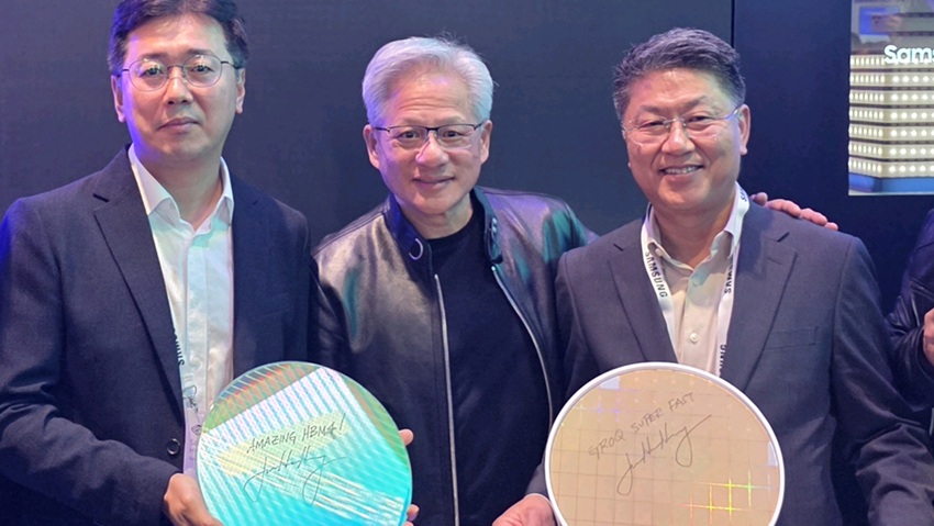 (좌측부터) 황상준 메모리개발담당 부사장, 엔비디아 젠슨 황 CEO, 한진만 파운드리 사업부장 사장