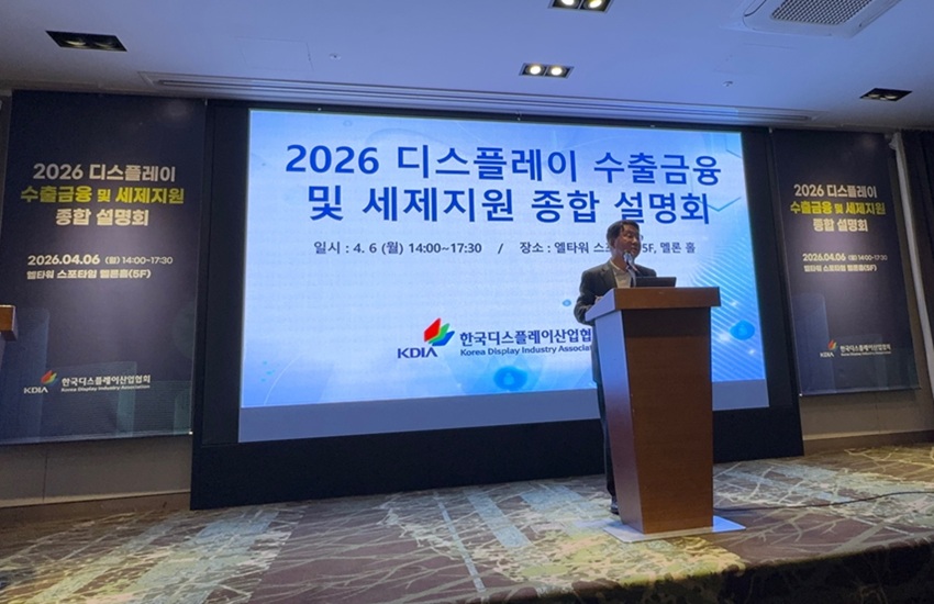 한국디스플레이산업협회(협회장 이청)는 4월 6일(월) 엘타워 멜론홀에서 패널 및 소부장 분야 100개 이상의 기업이 참석한 가운데 “2026 디스플레이 수출금융 및 세제지원 종합 설명회”를 개최하였다.