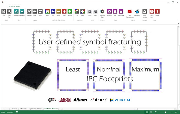 무엇보다 ECAD 파트 위저드는 설계 엔지니어들이 회로도 기호 파단(fracture) 처리과정을 완전히 통제할 수 있게 한다. 파단 발생횟수를 비롯해 각 파단 부위(좌측, 우측, 하단) 주변의 핀 배치, 핀 노출에 대한 명령 등이 통제된다. 또한 EPW는 인쇄 배선 회로 기판(PCB) 레이아웃 부품 배치도를 제공하는데, 이 모든 배치도는 IPC를 준수해 사용자 필요에 따라 최소, 중간, 최대 옵션을 선택하게 한다.