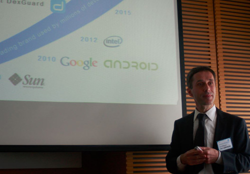 한편 이날 ‘Guard Square’사의 공동설립자겸 CTO이자 유명 안드로이드 보안 개발자인 ‘Eric Lafortune’이 참석하여 제품과 최신의 모바일 보안 동향을 설명하였다.