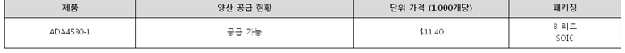 ADA4530-1 연산 증폭기의 입력 바이어스 전류는 125℃에서는 250fA, 85℃에서는 20fA로 떨어지며 이는 경쟁 제품대비 각각 125℃에서는 20배, 85℃에서는 50배 낮은 수치이다. 게다가 ADA4530-1은 실온에서 85℃ 사이의 온도에서 입력 바이어스 전류를 20fA로 동일하게 유지할 수 있는 유일한 연산 증폭기이며, 실온 및 125℃의 온도에서 바이어스 전류에 대해 완전한 생산 검정(fully production tested)을 거친 연산 증폭기는 동급 제품들 중에서 ADA4530-1이 유일하다.