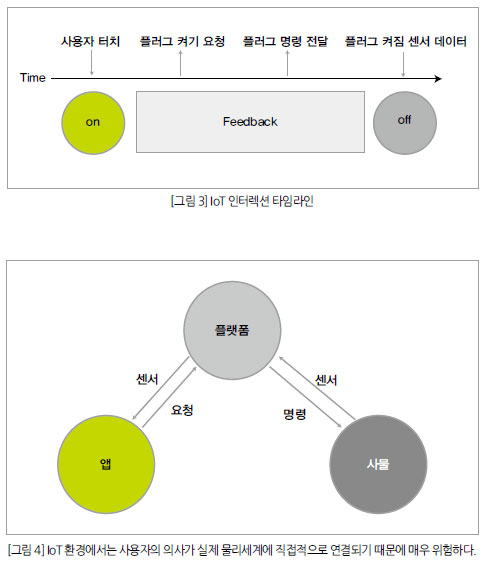 하지만 스마트 플러그의 경우 PC나 모바일 시대에서와 같이 화면에 간단한 입력을 했을 뿐인데 실제 전원이 공급되거나 중단되어 실제 물리적 세계에 직접적으로 영향을 준다.