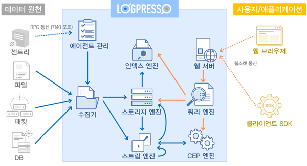 로그프레소는 IT 인프라에서 발생하는 다양한 데이터의 수집부터 저장, 분석, 시각화에 이르는 전체 과정을 단일 엔진으로 처리할 수 있는 국산 실시간 빅데이터 솔루션이다.