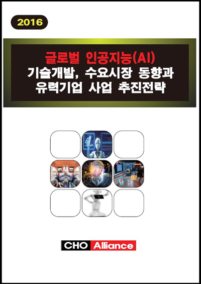 이에 본격적인 부흥기를 맞이하고 있는 인공지능 기술과 시장에 대해 CHO Alliance는 개념에서부터 핵심 기술(머신 러닝, 딥 러닝 등)과 주요 이슈 등을 정리·분석하고 향후 인공지능이 적용될 수 있는 유망 사업 분야를 조명했으며 이를 국내외 핵심 참여업체의 사업 동향 및 개발전략을 통해 살펴봄으로써 국내 기업의 마케팅전략 수립에 유용한 참고자료가 될 수 있도록 하는데 중점을 두고 조사 분석했다. 본서가 관련 기업체와 관심을 갖고 있는 모두에게 작은 도움이 될 것으로 기대된다.