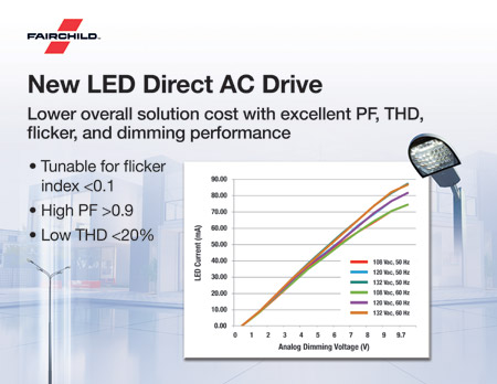 PCIM 2016 박람회에서, 고성능 반도체 솔루션의 세계적인 공급업체 페어차일드(NASDAQ: FCS)가 솔리드 스테이트 LED 라이팅 솔루션인 LED 다이렉트 AC 드라이브 제품군 중 첫 번째 솔루션인 새 FL77944를 발표했다. 이제 제조업체는 이 솔루션을 통해 전력을 쉽게 확장하고 스위치 모드 파워 서플라이(SMPS) 접근법을 이용하는 제품보다 더 작으면서 성능은 강하고 오랫동안 사용할 수 있는 스마트하고 확장 가능한 LED 기반 라이팅 제품을 만들 수 있게 되었다.
