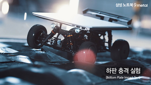 삼성전자는 실제 테스트를 위해 별도 제작한 무선 조종 차량 위에 ‘노트북 9 메탈’ 제품을 탑재한 후 다양한 장애물을 통과하는 박진감 넘치는 레이스를 통해 제품의 강력한 내구성을 강조했다.