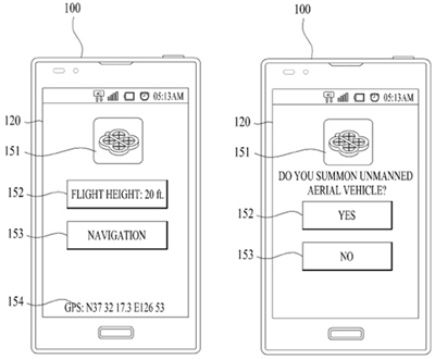 LG ELECTRONICS INC.(Seoul, KR)는 2015년 11월에 ‘스마트폰의 앱 실행과 UI/UX를 통해 UAV 제어와 피드백을 받는 방법(UNMANNED AERIAL VEHICLE CONTROL APPARATUS AND METHOD, 20150316927, 5 Nov 2015)’이라는 특허를 등록했는데, 이는 2014년 4월 30일에 한국에 특허 출원한 출원번호(10-2014-0052081)를 여기에 통합한 것이다.