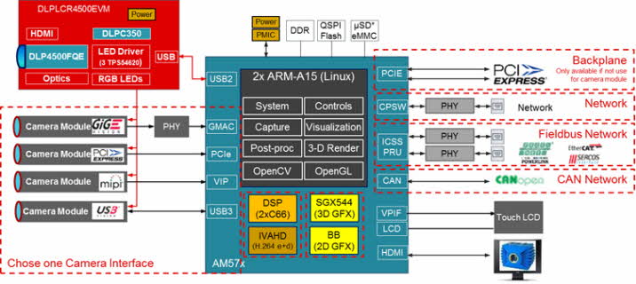AM572x 프로세서 SoC는 2개의 ARM® Cortex®-A15 프로세서와 2개의 C66x DSP 코어를 포함하고 있다. ARM 프로세서는 하이 레벨 OS를 실행하고 이미지 포착을 제어하며, 3D 머신 비전 프로세싱을 수행한다. C66x DSP 코어는 ARM 코어를 효율적으로 오프로딩 하는 데 사용될 수 있으며, 기하학적 계산을 실행하고, 3D 포인트 클라우드를 생성하며, 물체의 특성을 추출해 복잡한 분석 알고리듬을 실행하는 데 적합하다.