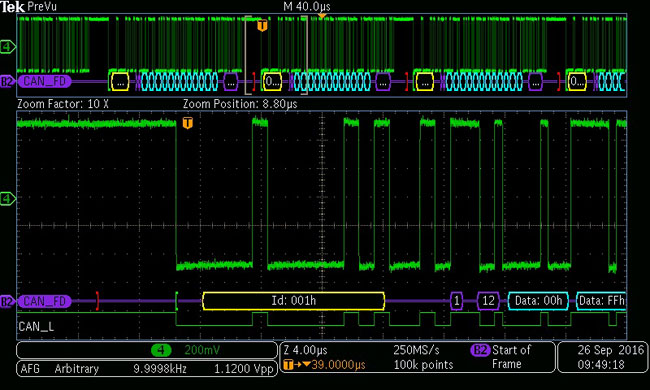 새로운 텍트로닉스 CAN FD 솔루션은 프로토콜을 다루는 자동차 엔지니어들에게 실제 버스 트래픽을 확인 가능하고 이와 함께 빠르고 효율적으로 설계를 검증하고 문제를 해결하기 위한 강력한 디버깅 및 검증 도구를 제공한다.
