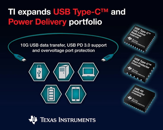 업계에서 가장 다양한 USB 호환 IC 제품 포트폴리오를 제공하고 있는 TI는 5종의 새로운 USB 타입-C 및 PD (Power Delivery) 제품을 출시한다고 밝혔다. 이들 신제품은 개발자들이 보다 우수한 신호 품질을 제공하고 시스템 손상을 방지할 수 있는 USB 타입-C 전자제품을 설계할 수 있도록 한다.
