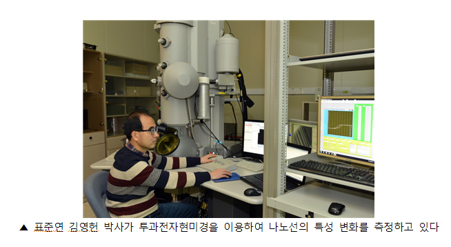 국내 연구진이 나노선(nano wire)의 특성 변화를 가장 정확히 측정, 평가할 수 있는 기술을 개발했다. 한국표준과학연구원 첨단측정장비센터의 김영헌 박사팀은 투과전자현미경을 이용해 나노선의 특성 변화를 측정하는 기술을 개발하고, 이를 활용해 3성분계 화합물 반도체인 InAsP1) 나노선의 기전특성(기계적/전기적 특성)을 실시간으로 측정하는데 성공했다.