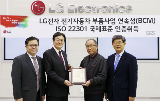 LG전자가 전기차 부품 사업에서 각종 재해나 사고 발생 시에도 빠른 대응과 복구가 가능한 경영능력을 국제적으로 인증받았다.