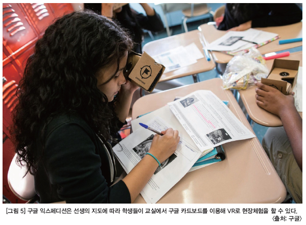 익스페디션은 선생의 지도 하에 학생들이 교실 안에서 교실 밖을 현장체험할 수 있는 가능성을 열었다. 전자상거래와 관련해서는 알리바바가 VR과 쇼핑을 접목해 가상의 옷을 입어보고 결제할 수 있는 ‘BUY+’라는 서비스를 선보였으며, VR을 접목한 테마파크를 만든 더보이드와 같이 체험공간에 VR·AR을 접목하는 시도도 지속적으로 나타나고 있다.