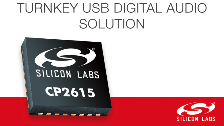 싱글칩 CP2615 오디오 브리지는 컴팩트형 5×5 mm QFN 32 패키지로 제공되며, PCB 공간이 제한적인 휴대용 오디오 애플리케이션에 이상적이다. 많은 기능을 담고 있는 CP2615 디바이스는 USB 2.0 풀스피드 컨트롤러, USB 트랜시버, 온칩 오실레이터, I2S 오디오 인터페이스, I2C 제어 인터페이스 및 디바이스 구성을 저장하기 위한 임베디드 플래시 메모리를 포함하고 있다.  집적도가 매우 높기 때문에 외부 부품이 필요 없으며, 결과적으로 PCB 사이즈를 줄이고 BOM 비용을 낮출 수 있다.