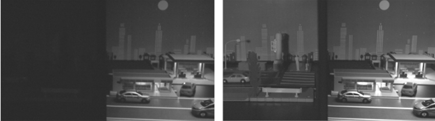 ▲ 그림 4. 30분의 1초로 판독한 이미지 캡처(좌)와 120분의 1초로 판독한 이미지 캡처(우) 〈출처: 소니〉
