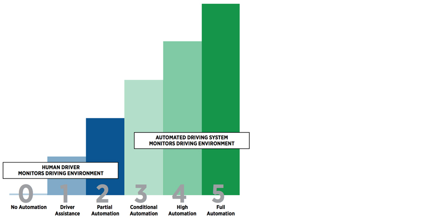 ▲ 자율주행 자동차의 5단계 〈출처: SAE〉