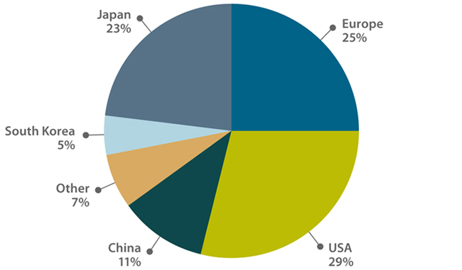 ▲ 주요 국가별 GNSS 산업 점유율 〈출처: GNSS Market Report, 유럽 GNSS 기구〉
