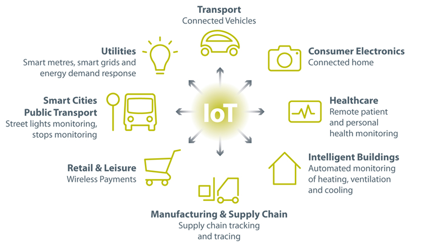 현재 예측의 대부분은 제조 및 공급망 체인, 스마트 시티 분야가 매출 측면에서 가장 큰 시장을 형성할 것으로 내다보고 있는데 2020년까지 각각 2조 5,000억 유로(3,343조 6,500억 원), 1조 3,000억 유로(약 1,739조 880억 원)의 매출 규모에 이를 것으로 전망된다. 또한 IoT 헬스케어 시장은 연평균 38%의 높은 성장률을 보일 것으로 전망된다.