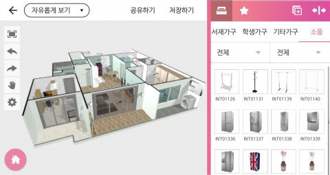 HMD 연동은 물론 한국가상현실이 구축한 수많은 3D VR 아파트 평면도, 자재 콘텐츠 DB들을 통해 나만의 디자인 공간을 꾸며볼 수 있으며 다양한 인테리어 관련 매거진까지 받아 볼 수 있다.