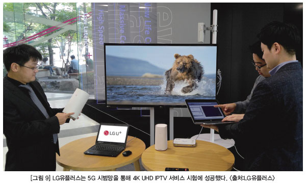 현재 스마트폰이나 태블릿을 통해서 서비스되는 동영상의 품질 수준은 720P 수준의 HD급에 머물러 있다. 그러나 5G 환경에서는 4K(약 40Mbps), 8K UHD(약 160Mbps) 동영상 서비스도 제공할 수 있다. 국내 이동통신사인 LG유플러스가 최근 4K UHD 콘텐츠를 5G 시범망을 통해 IPTV로 제공하는 테스트를 진행해 성공하기도 했다.