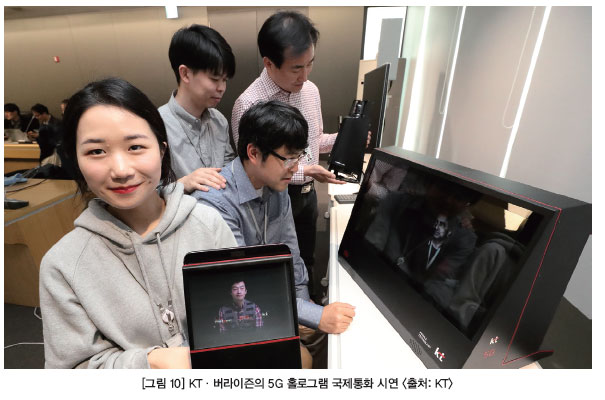 홀로그램을 사용하면 학교, 사무실, 회의장, 경기장에 직접 가지 않아도 현재의 공간에서 실시간으로 느끼고 상호작용이 가능해진다. 4G를 통해 영상 통화가 자리를 잡았다면 5G를 통해서는 홀로그램 통화도 구현되고, 상용화될 전망이다. 이와 관련해서도 국내 이동통신사 KT가 미국 버라이즌과 함께 홀로그램 5G 국제통화 시연에 성공한 바 있다.