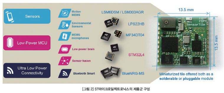 센서타일은 소형화된 타일 형태의 설계 플랫폼이다. 모션, 환경, 음향 파라미터를 원격적으로 검출하고 측정하는 데 필요한 모든 요소를 포함한다. 드론 개발자는 커넥티비티와 센서 통합에 대해서는 신경 쓸 필요 없이 드론의 공기역학, 모터 제어, 물리적 설계에만 집중할 수 있다.