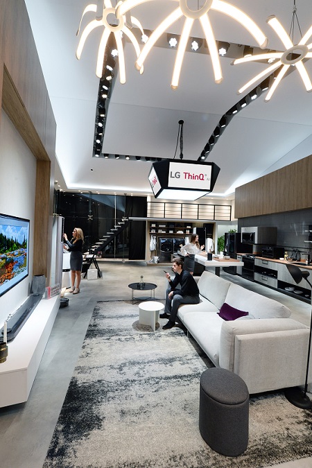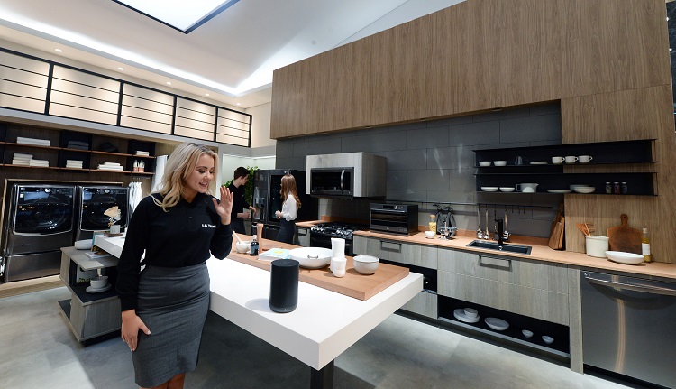 LG전자는 ‘LG 씽큐 존’에 거실, 주방, 세탁실 등 소비자가 실제 생활하는 ‘공간’을 연출하고 독자 개발 인공지능 플랫폼 ‘딥씽큐(DeepThinQ)’뿐 아니라 외부의 다양한 인공지능 기술을 탑재한 제품들을 전시했다.
