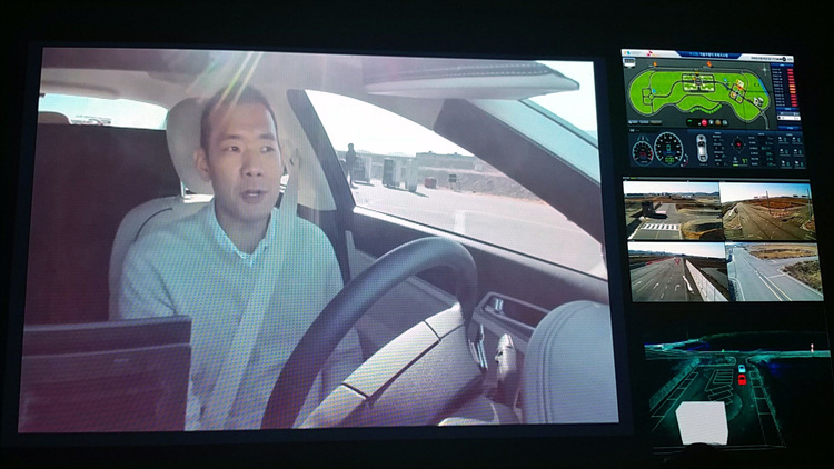???????5G 차량통신 기술(V2X), 3D HD맵, 딥러닝 기반 주행 판단 기술이 융합되어 서로 통신하고, 신호등, 관제센터와 교통 상황을 주고받으며, 약 2km 구간의 트랙을 달렸다.