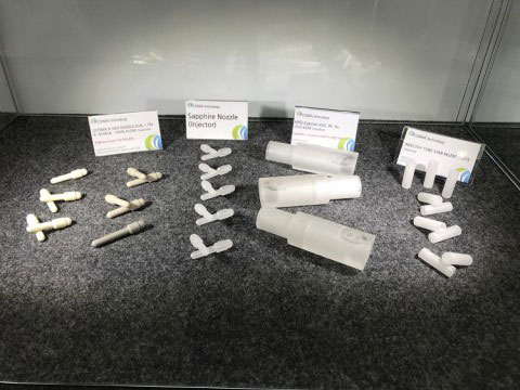 특히 기존 세라믹이나 쿼츠 인젝터(노즐)보다 수명과 수율이 월등하게 좋은 사파이어인젝터(노즐)는 공정상 핵심 이슈인 파티클을 최소화 하여 수율을 향상시키고 기존 부품 대비 부품 수명이 최소 3~5배 증가하여 원가절감에 획기적인 기여를 한다.