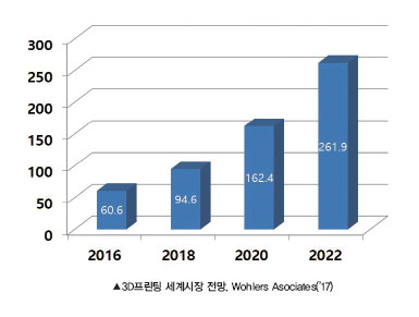 지난해 국내 3D프린팅 시장 규모는 2016년(2,971억 원)보다 16.8% 증가한 3,469억 원으로 나타났다.