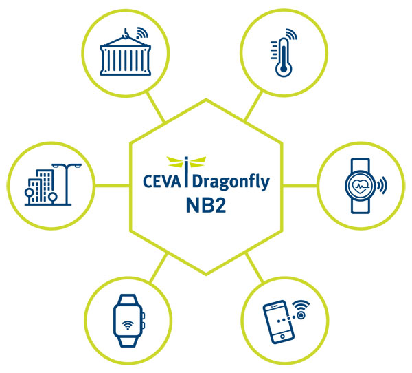 CEVA-드래곤플라이 NB2는 세계 최초로 라이센스를 받을 수 있는 Rel14규격의 eNB-IoT솔루션으로, 스마트시티, 교통, 운송 및 소비자 가전 영역을 포함한 엔드마켓에서 활발하게 사용된CEVA-드래곤플라이 NB1을 기반으로 했다.