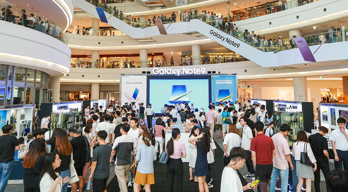삼성전자가 서울 영등포 타임스퀘어, 강남 코엑스몰, 부산 서면, 대구 동성로 등 전국 핫스팟에 한 단계 더 진화한 ‘갤럭시 노트9’을 체험할 수 있는 ‘갤럭시 스튜디오’를 지난 12일 오픈하며 본격적인 사전 마케팅을 개시했다.