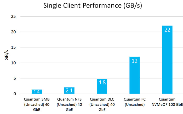퀀텀의 엑셀리스(Xcellis) 스케일아웃 어플라이언스는 요구사항이 증가하는 애플리케이션 및 고해상도 컨텐츠에 맞게 고성능을 제공하는 솔루션으로 인정받아 왔다. 이제 엑셀리스(Xcellis) 어플라이언스에 NVMe 스토리지를 적용함으로써 탁월한 초당 22GB(22 GB/s) 단일 클라이언트, 언캐시드(uncached) 스트리밍 대역폭을 기반으로 초고속의 성능을 발휘할 수 있게 되었다.