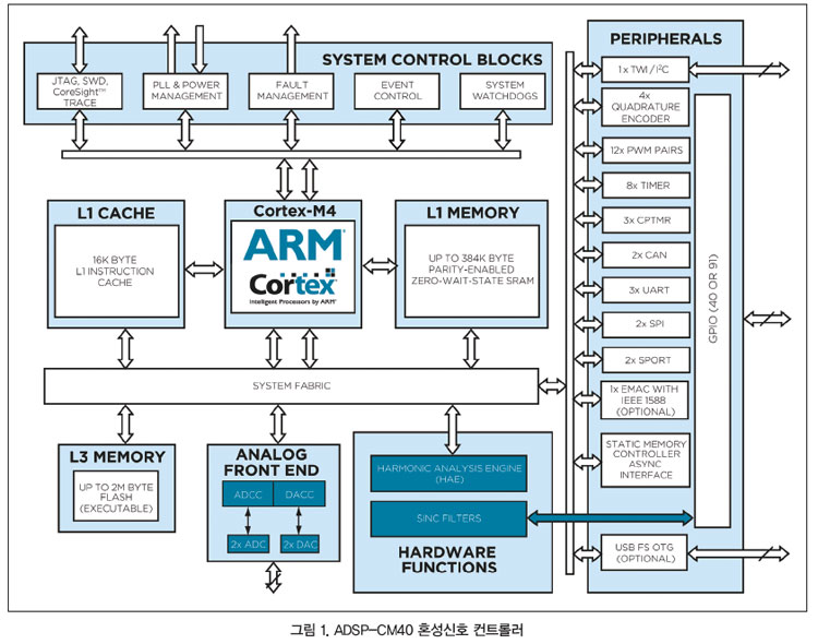 다양한 제어 모터를 구동하는 데 필요한 처리 성능이 있다. 아나로그디바이스의 ADSP-CM40 혼성신호 컨트롤러는 적합한 선택이다. 240MHz ARM 코어텍스-M4 프로세서인 CM40는 외골격 로봇을 제어하는 데 필요한 정교한 신호 처리 알고리즘을 위해 제작됐다. 또한 적절한 모터 제어 펌웨어를 사용하면 효율을 높이고 마모와 진동을 줄여 모터 수명을 늘릴 수 있다. 이 밖에 모터의 과열로 인한 파손을 방지하는 알고리즘도 필요하다. 그러나 가장 중요한 것은 특정 움직임이 한 부분에 너무 많은 응력을 주거나 착용자의 균형을 잃게 만들지 않는지 예측할 수 있게 하여 로봇 착용자를 보호하는 것이다.
