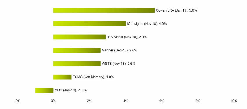 조사 기관별 반도체 시장 전망 (Source : SEMI January2019)