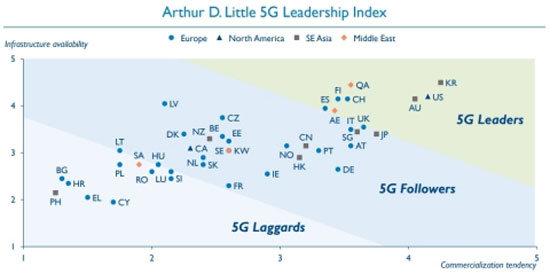 5G 망 서비스의 출시가 가속화되는 가운데, 아서디리틀은 자체적으로 5G 선진국 지표(5G Country Leadership Index)를 발표했다.