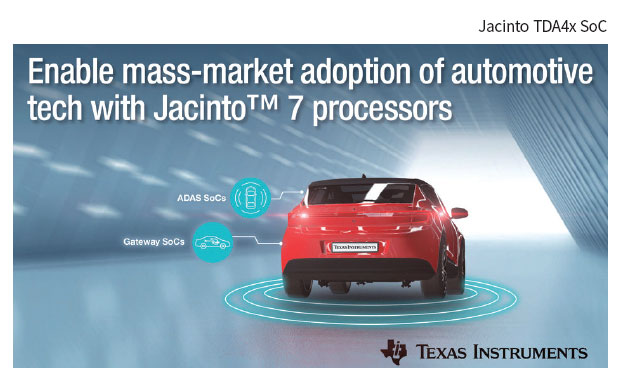 최초의 Jacinto 7 프로세서 플랫폼 제품인 Jacinto TDA4x SoC는 주변 환경에 대한 차량의 인식 능력을 향상시켜 더 나은 주행 경험을 제공한다. 또 다른 제품인 Jacinto DRA8x SoC는 소프트웨어 정의 자동차에서 더 빠른 고성능 컴퓨팅 기능과 통신을 제공한다.