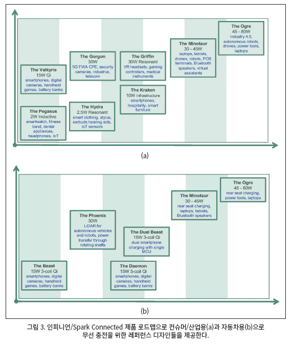 인피니언은 Spark Connected와 제휴해서 업계에서 유일하게 유도 기술과 공진 기술을 모두 지원하므로 고객들의 다양한 애플리케이션 요구를 충족한다(그림 3a와 3b). 뿐만 아니라 유도 및 공진 솔루션 둘 다 시장의 필요에 따라서 표준에 기반하거나 또는 특정 애플리케이션 용으로 맞춤화할 수 있다.