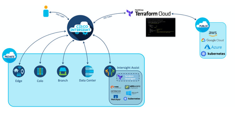 시스코 인터사이트 플랫폼은 일관된 SaaS 기반 클라우드 운영 플랫폼을 통해 하이브리드 및 온프레미스 환경의 애플리케이션 및 인프라를 위한 지능형 시각화 및 최적화, 오케스트레이션을 제공한다. 테라폼을 위한 시스코 인터사이트 서비스는 온프레미스 환경을 테라폼 클라우드 비즈니스와 쉽고 안전하게 통합할 수 있는 브리지를 제공함으로써 IT 운영 및 데브옵스(DevOps) 팀이 하이브리드 클라우드에서 코드형 인프라를 사용하여 인프라 프로비저닝을 자동화할 수 있도록 지원한다.