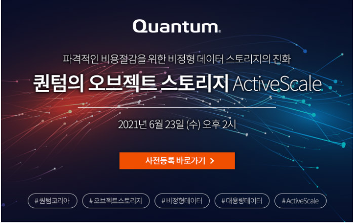 퀀텀코리아(지사장 이강욱)는 6월 23일에 수PB규모를 넘어 EB 규모까지 급증하는 비정형 데이터를 비용 효율적이면서도, 신속하고 안전하게 데이터를 관리하는 방법을 소개하는 ‘비정형 데이터 스토리지의 진화, 퀀텀의 오브젝트 스토리지: ActiveScale’ 온라인 세미나를 개최한다고 밝혔다.