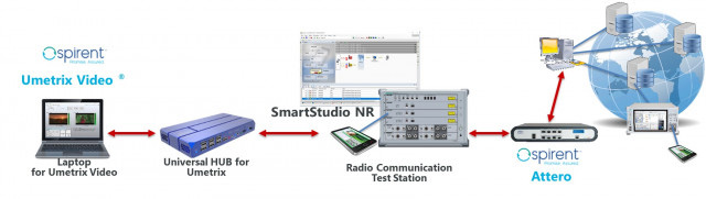 이 솔루션은 안리쓰의 MT8000A Radio Communication Test Station 및 SmartStudio NR(SSNR) 컨트롤 소프트웨어를 Spirent의 Attero 네트워크 에뮬레이터 및 Umetrix Video 시스템과 통합해 비디오 품질을 평가한다.