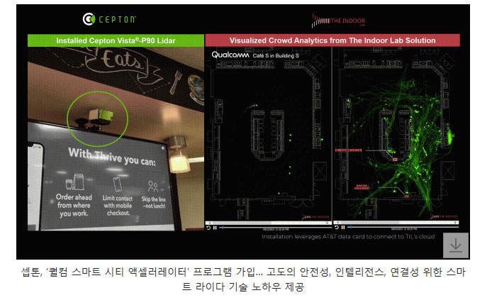 스마트 라이다 솔루션을 제공하는 셉톤 테크놀로지스(Cepton Technologies)가 ‘퀄컴 스마트 시티 액셀러레이터 프로그램(Qualcomm® Smart Cities Accelerator Program)’ 회원사로 가입했다고 발표했다.