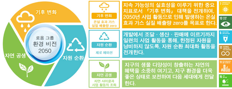로옴 그룹은 이를 바탕으로 국내외 통합 환경 경영을 추진하여, '환경 부하 제로'에 도전하고 있다. 기후 변화로 인한 리스크가 한층 더 현저하게 나타나고 있는 상황에서, 2021년 9월에는 2030년까지의 온실 효과 가스 배출량 삭감 목표를 기존의 2018년도 대비 30% 삭감에서 50.5% 삭감으로 상향 조정했다. 이에 따라, 산업 혁명 전과 비교하여 기온 상승을 '1.5℃ 미만으로 억제하는 수준에 부합하는 목표'로서, SBTi의 인증을 받았다.