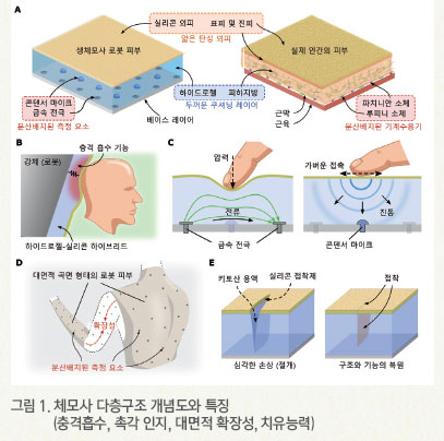 KAIST(총장 이광형)는 기계공학과 김정 교수 연구팀이 메사추세츠 공과대학(MIT), 슈투트가르트 대학교(Univ. of Stuttgart)의 연구자들과 공동연구를 통해 `넓은 면적에 대해 다양한 외부 촉각 자극을 인지할 수 있으며, 칼로 베어져도 다시 기능을 회복할 수 있는 로봇 피부 기술'을 개발했다.