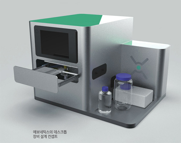 에보네틱스의 DNA 라이터는 구입과 사용이 용이한 플러그 앤 플레이 데스크톱 장비가 될 것이다. 이 제품은 고도의 병렬 합성이 가능하고 매우 복잡하게 설계된 일회용 전용 카트리지를 통해 다양한 기능과 애플리케이션을 지원할 것이다.