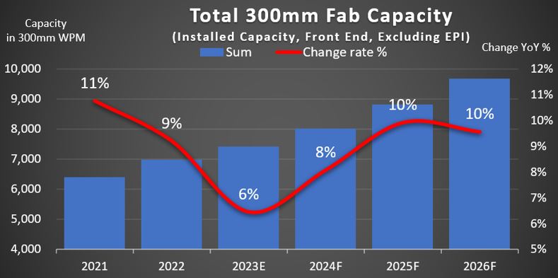2022년에서 2026년 사이 300mm 팹 생산능력을 확장할 것으로 예상되는 칩 메이커는 글로벌파운드리, 후아홍, 인피니온, 인텔, 키옥시아, 마이크론, 삼성전자, SK하이닉스, SMIC, ST마이크로일렉트로닉스, 텍사스 인스트루먼트, TSMC 그리고 UMC가 있다. 이 기업들은 2023년과 2026년 사이 82개의 새로운 생산 시설을 가동할 것으로 전망된다.