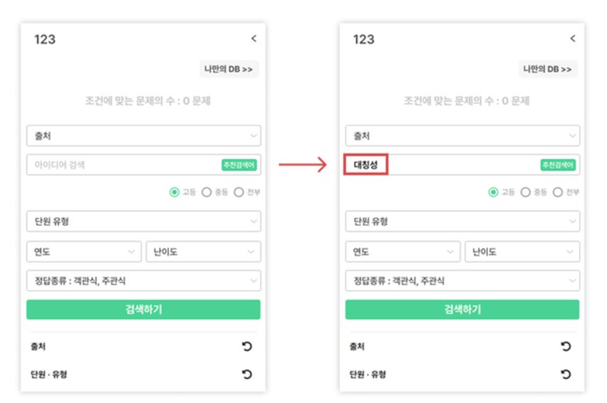 수학비서의 경우 문제를 아이디어로 검색할 수 있다. 이것은 문제에 포함된 Text로 검색하는 것과 다른 개념이다. 예를 들어 ‘대칭성’을 검색하면 수학상, 수학하, ... ,확통까지 대칭성이라는 개념이 들어간 모든 문제를 검색하여 필터링할 수 있다. 꼭 도형이 아니더라도 항등식, 방정식, 심지어 경우의 수나 확률에서도 대칭성의 아이디어로 풀어야 하는 경우가 있는데, 이걸 다 검색할 수 있다는 뜻이다. 이렇게 세분화된 Tag를 통해서 국가와 커리큘럼에 상관없이 작동하는 엔진을 만들고 있다.